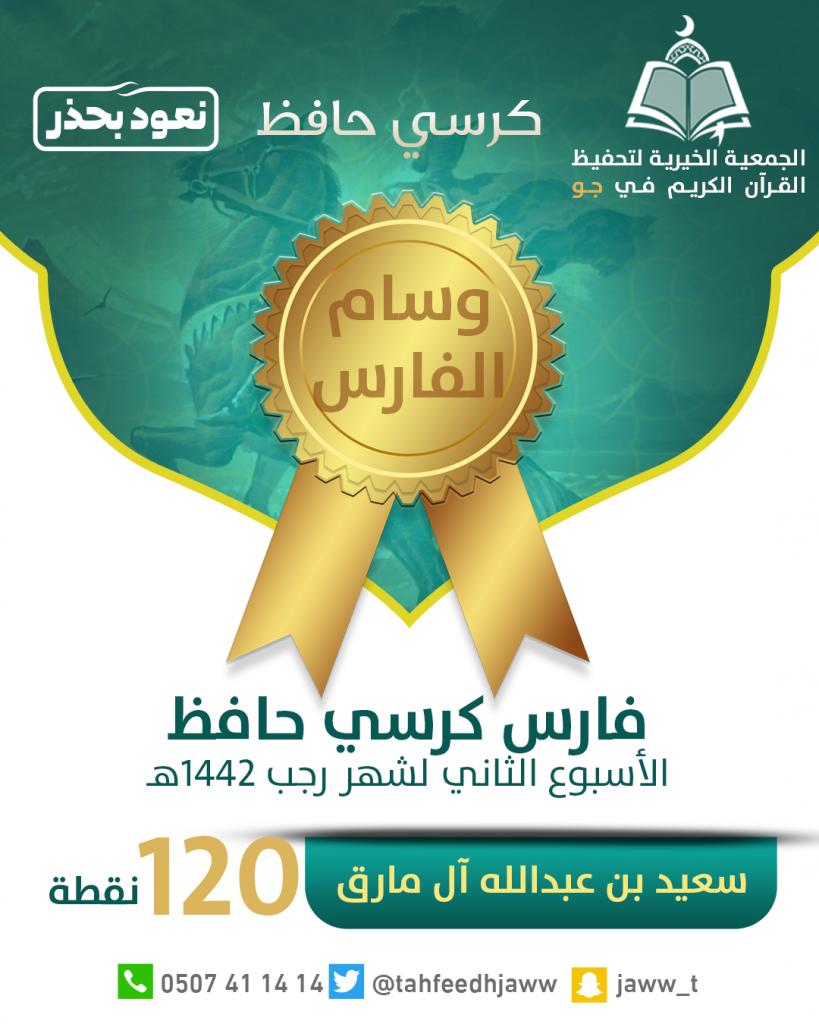 باركت الشؤون التعليمية للطالب سعيد بن عبدالله آل مارق بمناسبة حصوله على جائزة فارس الأسبوع الثاني لشهر رجب لعام ١٤٤٢هـ